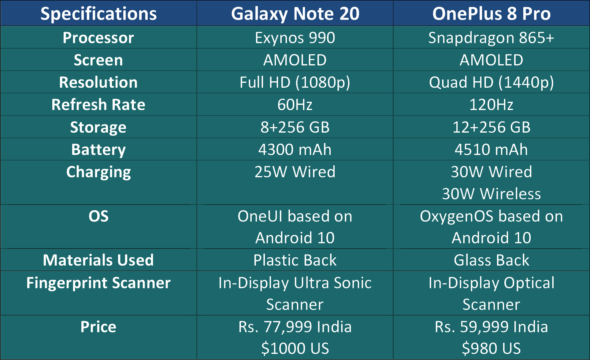 Let’s compare the Note 20 with another popular high-end phone, the OnePlus 8 Pro.